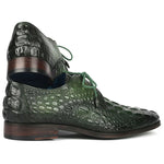 Paul Parkman Croco Textured Leather Derby Shoes Green