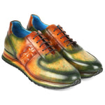 Paul Parkman Croco Textured Sneakers Green / Brown Patina