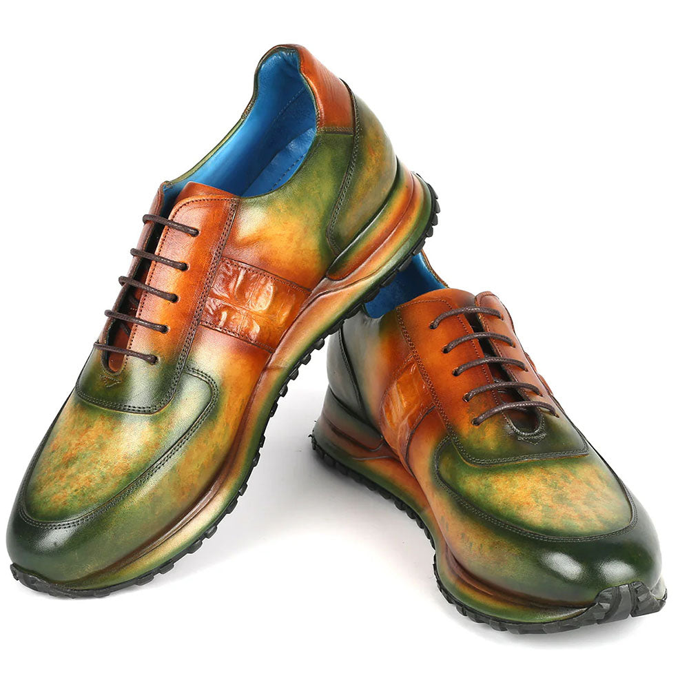 You are looking at: Paul Parkman Croco Textured Sneakers Green / Brown Patina
