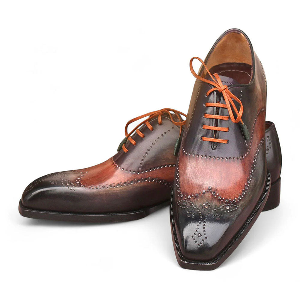 Awesome perforated decoration wingtip oxford style shoes from Paul Parkman featuring full leather sole, leather lining and insole.