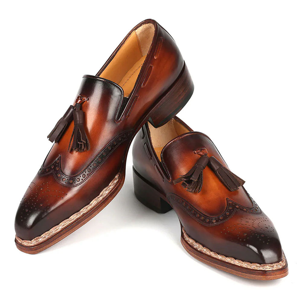Stunning hand-welt Norwegian construction slip-on style tassel loafers from Paul Parkman featuring full leather sole leather lining and insole. Paul Parkman style number 8507-BRW.