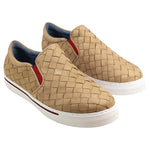 Double elastic suede woven slip-on sneaker with white rubber bottom and red detail made from True Glove leather, padded sockliner and cushioned collar. Perfect to be worn with or without socks.