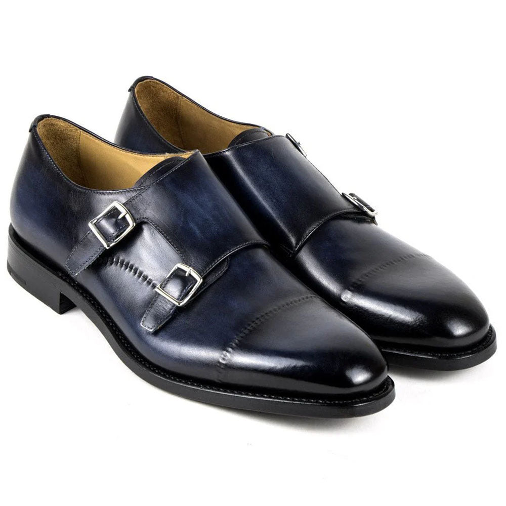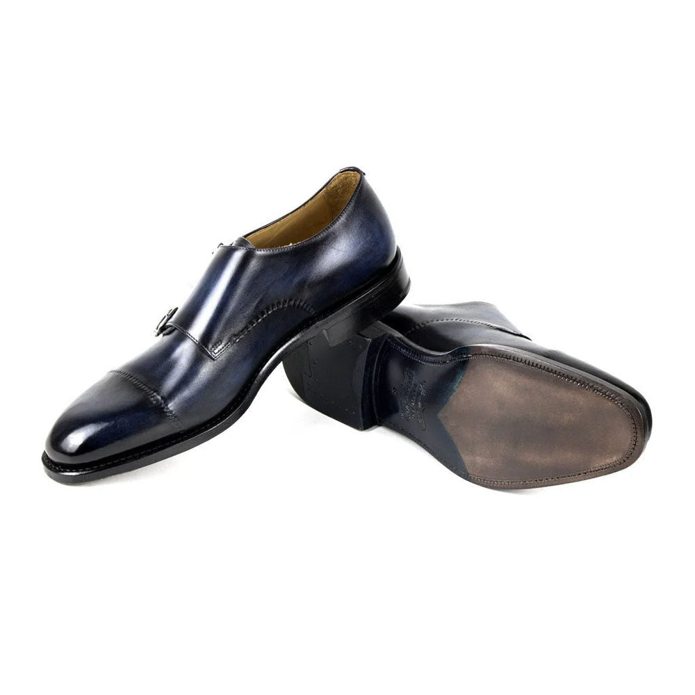 Spernanzoni Giudice Leather Double Monk Strap Antique Ocean