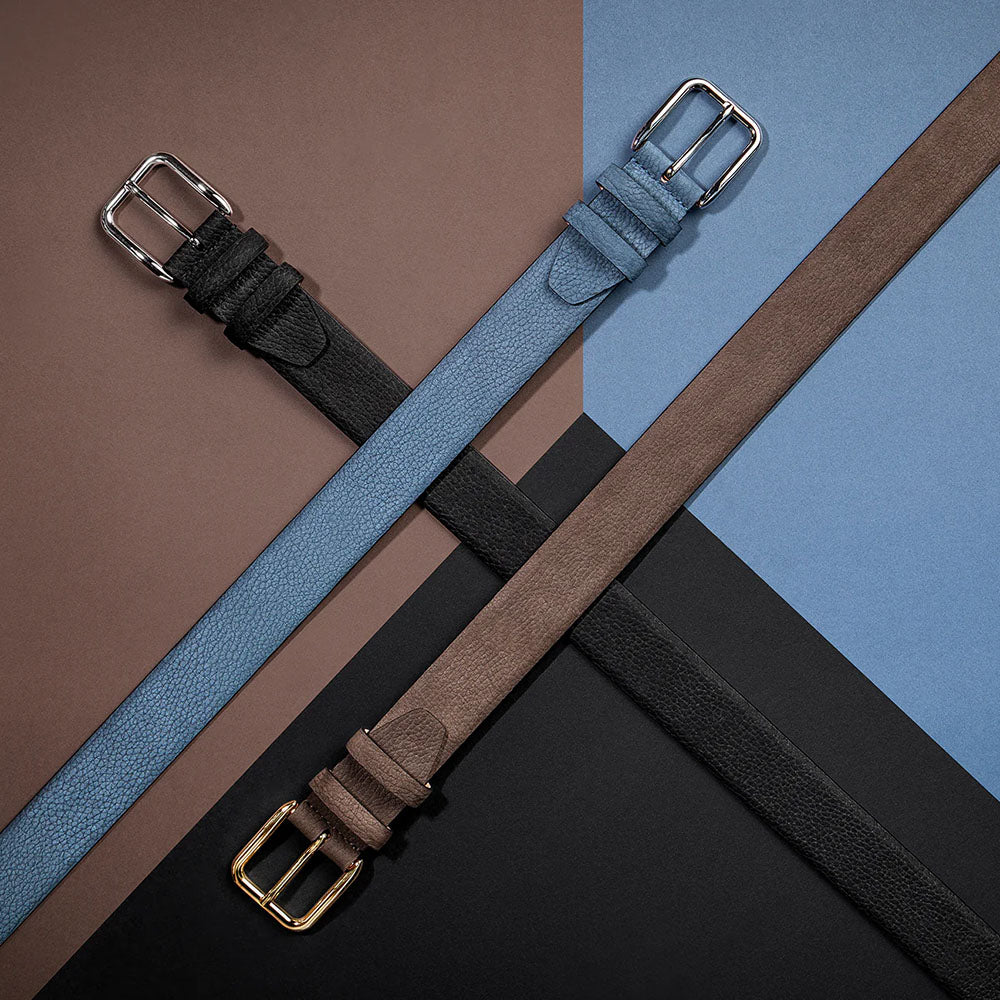 Handcrafted in Italy from premium grainy nubuck, this 35mm belt blends casual sophistication with modern versatility. It features a smooth calfskin lining, polished gold solid brass buckle, and an adjustable screw-mounted design for a custom fit. Refined yet versatile, it pairs effortlessly with denim, chinos, or tailored trousers.