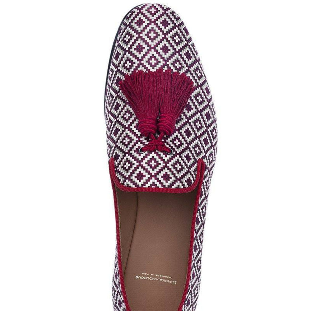 You are looking at: Superglamourous Savoy Bodrum Canvas Slippers Burgundy