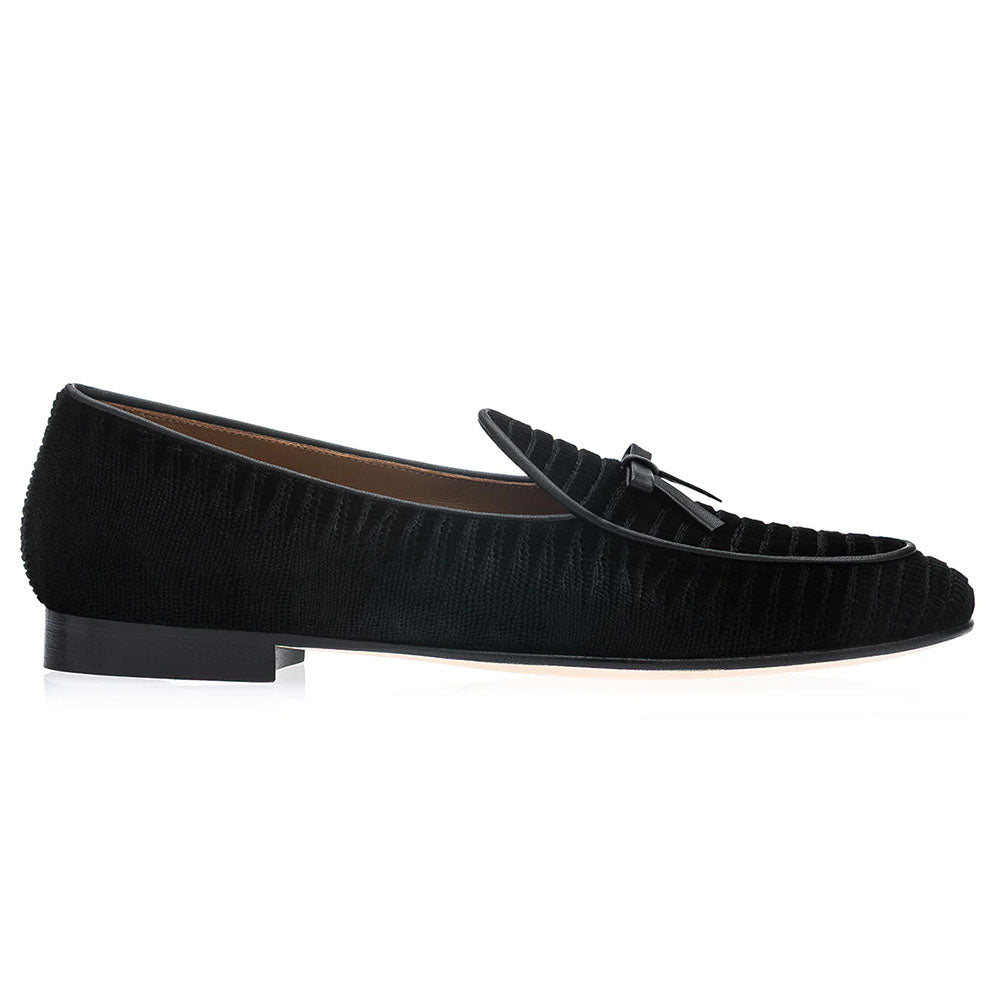 Superglamourous Tangerine 1 TejuVelour Belgian Loafers Black