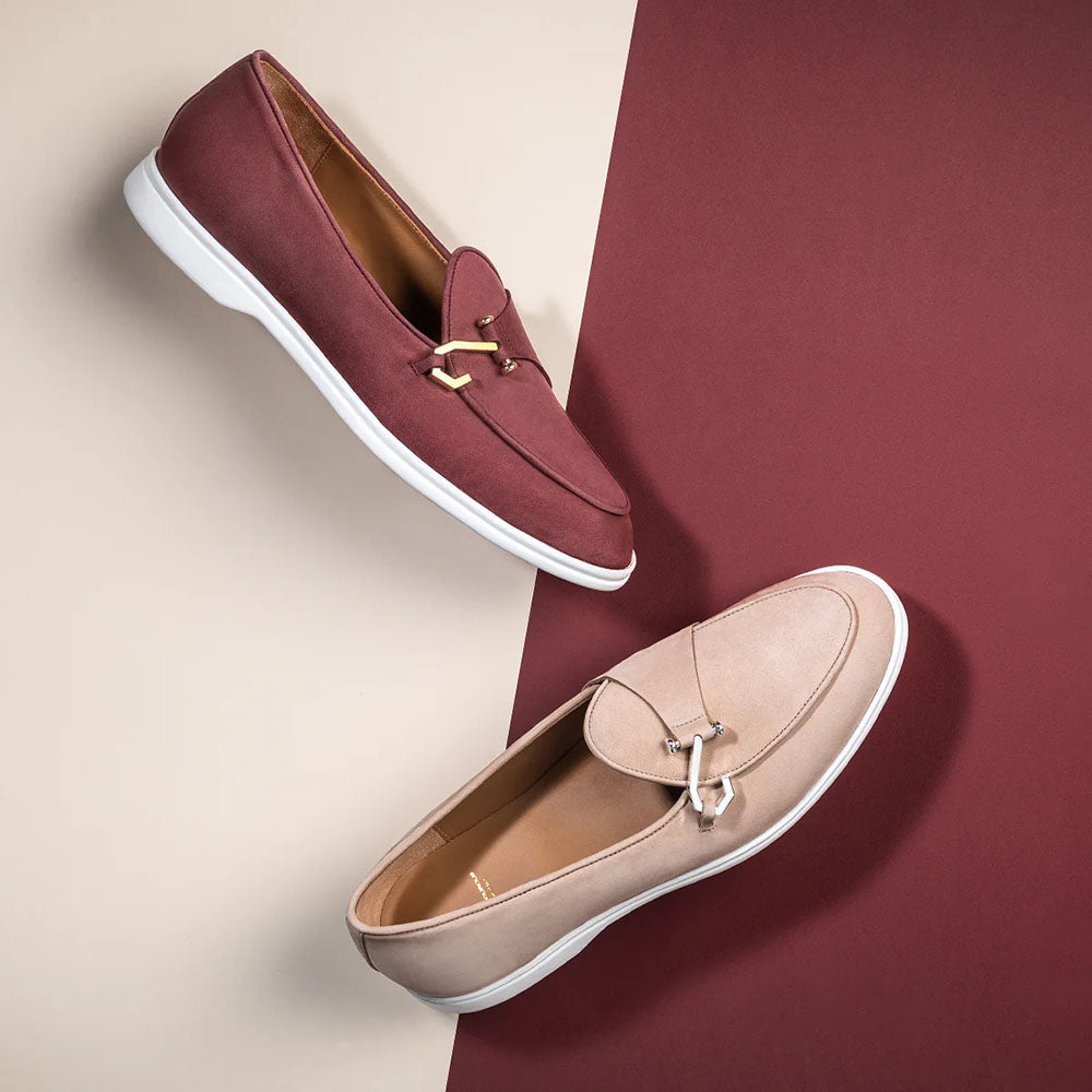 A bold evolution of the iconic Airwalk sneaker, this one-of-a-kind Belgian-style slip-on features nabuk with matching piping and distinctive square metal hooks. Handcrafted in Vigevano, Italy, it’s lined with supple calfskin and set on seamless white Margom® rubber soles—blending artisanal craftsmanship with innovative design. Handmade in Vigevano Italy.