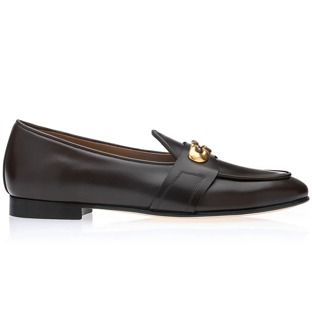 Handcrafted in Vigevano, Italy, these hand-brushed calfskin Belgian loafers blend timeless craftsmanship with modern edge. Featuring tonal piping, a matching band, and a sculptural silver metal accent, they offer refined sophistication and contemporary style. Built using the flexible *a sacchetto* technique with supple calfskin lining and durable leather soles, they deliver exceptional comfort and polish—perfect for both formal and elevated everyday wear.