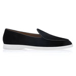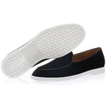 A casual yet sophisticated evolution of the iconic Tangerine style, these beige suede Belgian slip-on sneakers feature matching calfskin piping and a dense, velvety Italian suede texture. Handcrafted in Vigevano, Italy, they are finished with a smooth calfskin lining and durable white Margom® seamless rubber soles, offering refined comfort and style.