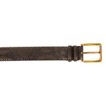 The Bethesda Green Python Skin Belt is a striking expression of modern luxury from Vinci Leather. Handmade in Turkey, it features genuine black snk skin paired with premium calfskin construction, a high-quality full nubuck backing, and a refined 1.5-inch width for lasting comfort and durability. Finished with a bold gold-tone buckle and Vinci’s signature design details, this exotic dress belt pairs seamlessly with coordinating Boss and Adler footwear to complete a polished look. This item cannot ship to California.
