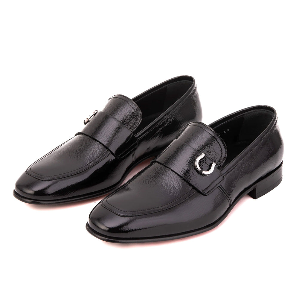 Vinci Leather The Blackwell Patent Leather Bit Loafer Black