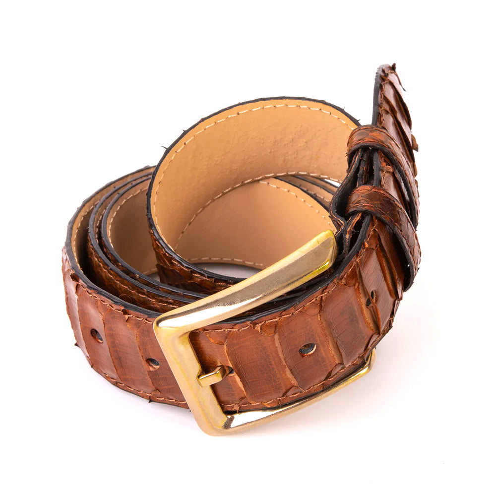 Vinci Leather The Boss Python Snake Leather Belt Tan