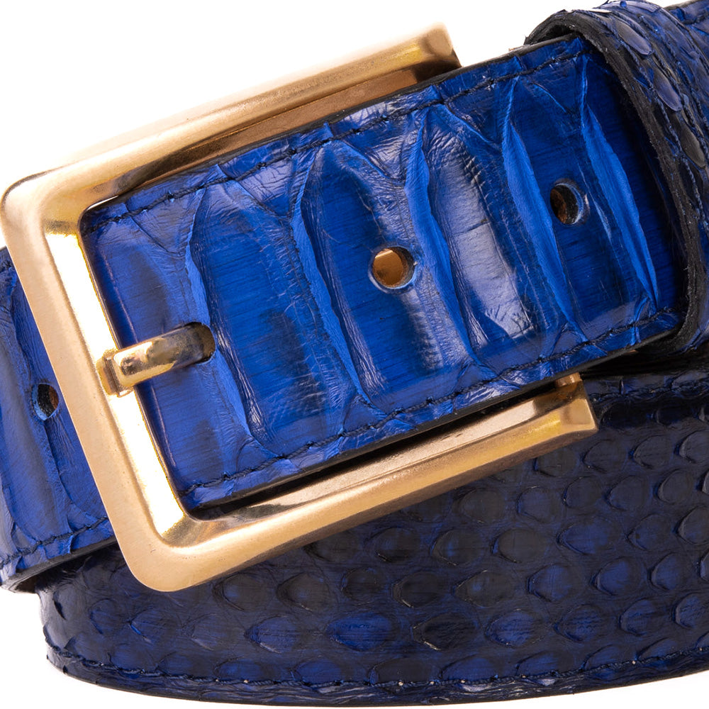 Vinci Leather The Boss Python Snake Leather Belt Navy Blue