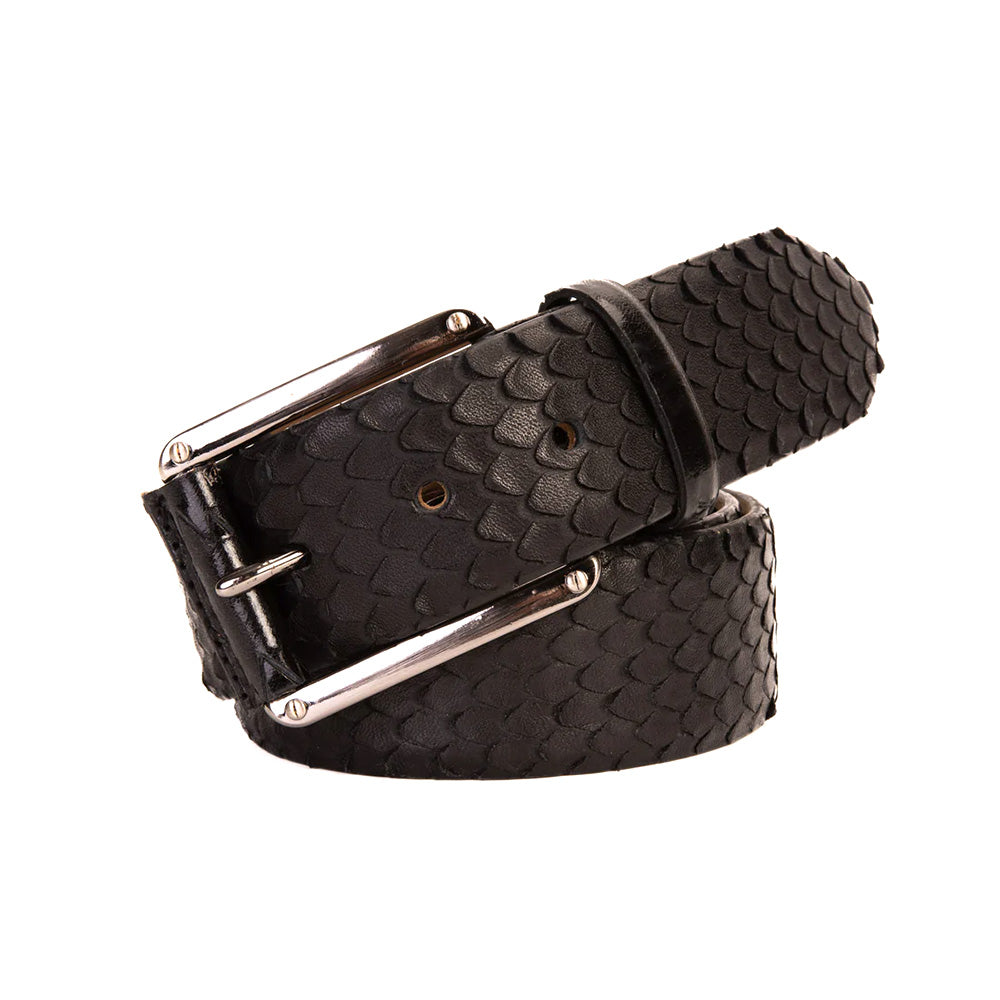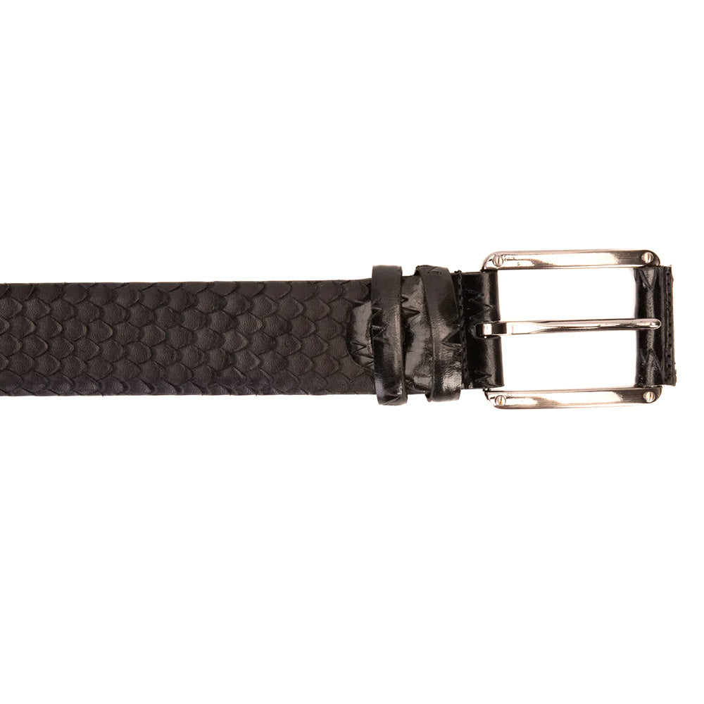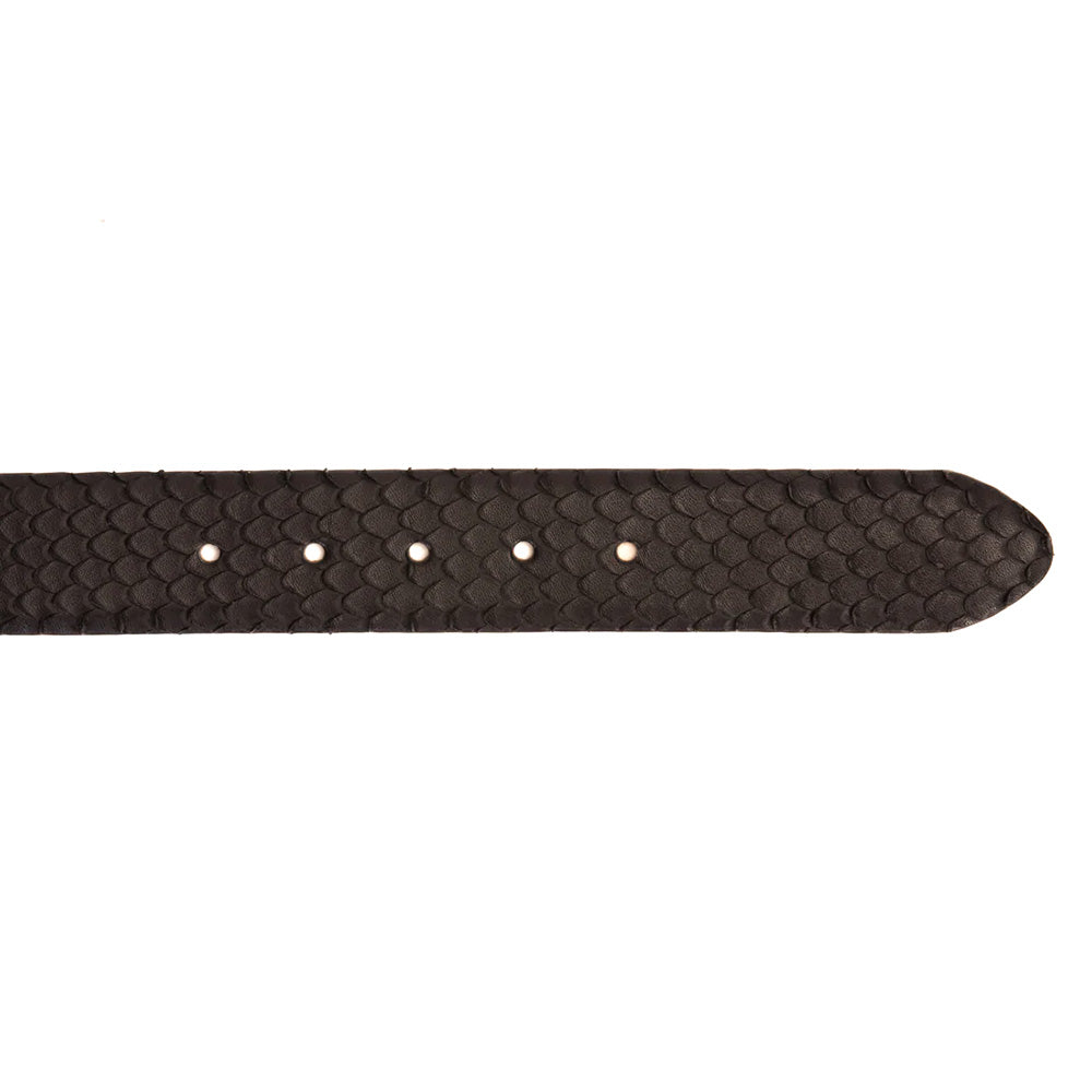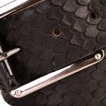 Elevate your look with the Caesars Black Python Sneak Leather Belt, a bold expression of exotic refinement. Crafted from 100% genuine calfskin leather with a striking python-inspired pattern, this belt delivers rich texture and standout style. A sleek silver buckle adds a modern, polished finish, while durable craftsmanship and an adjustable fit ensure lasting comfort. Designed to pair effortlessly with premium footwear, it is a sophisticated statement piece for both everyday and elevated wear.