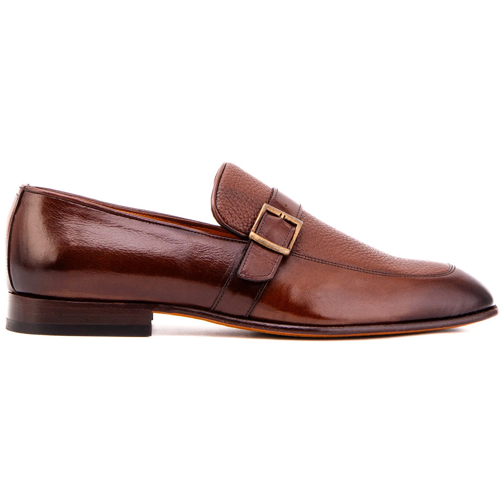 The Marquez loafer is a study in refined elegance, crafted from a blend of baby buffalo and genuine deer leather. The natural grain of the buffalo lends structure and durability, while the supple deer leather adds a smooth, luxurious touch. Fully lined in soft leather for comfort and breathability, it rests on a hand-finished leather outsole that enhances both longevity and sophistication. A sleek profile is elevated by a subtle side buckle, giving this loafer a versatile polish suited for formal settings, business attire, or distinguished evenings out. This is craftsmanship and luxury seamlessly brought together in a timeless design.