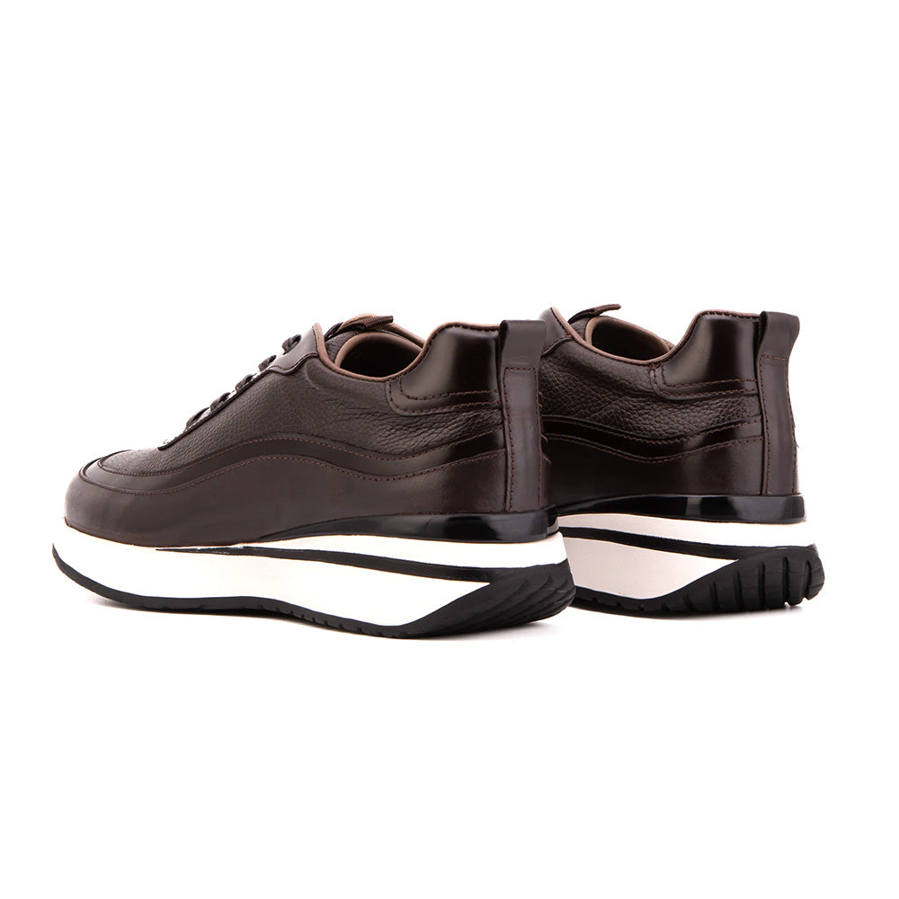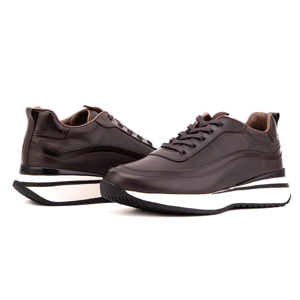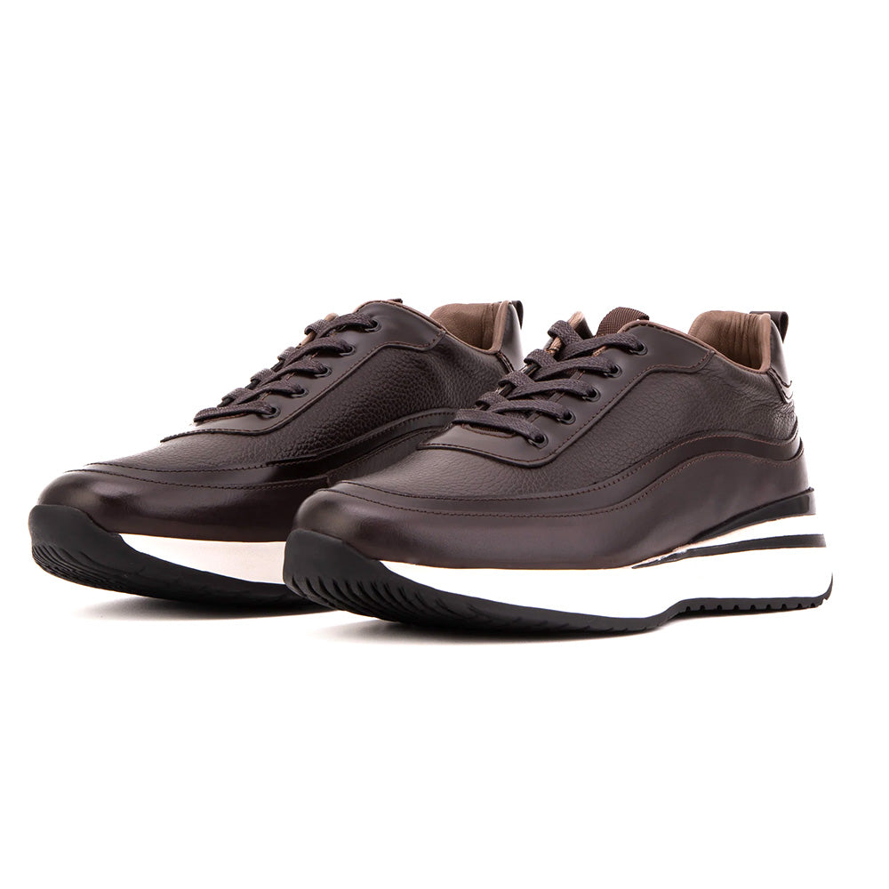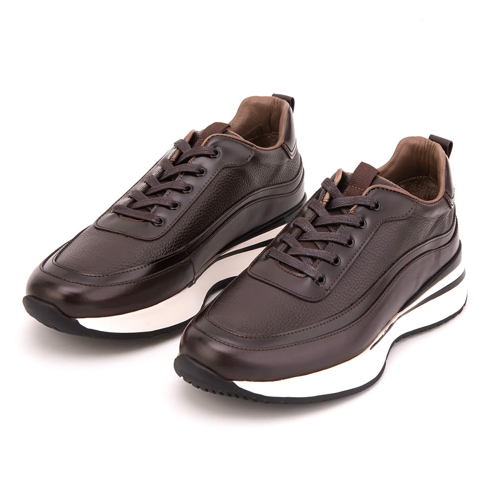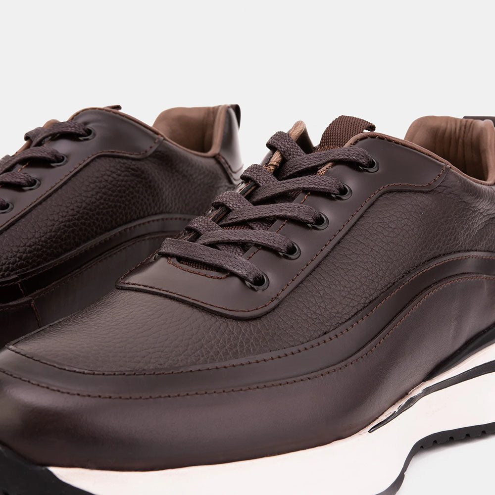 Crafted from premium smooth and pebbled calf leather, these sneakers showcase a refined contrast in texture and an elegant deep brown tone for versatile styling — from smart-casual to luxury streetwear. The full-grain leather lining ensures maximum breathability and long-lasting comfort, while the streamlined silhouette and layered leather detailing add depth and sophistication. A modern white balloon comfort sole delivers lightweight flexibility and durability for all-day wear. Handcrafted with Vinci’s signature attention to detail and Italian-inspired finesse, the design is completed with a sleek back pull tab and softly padded interior for superior cushioning, arch support, and Vinci’s exclusive comfort fit.