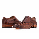 The Varenne Python Leather Oxford Shoe is a statement of refined luxury, merging exotic materials with timeless craftsmanship. Handcrafted from genuine python skin and premium water buffalo leather, it captures both individuality and elegance in every detail. The textured python creates a striking visual presence, balanced by the smooth durability of buffalo leather for a distinguished finish. Inside, full leather linings provide breathability and lasting comfort, while a handcrafted leather sole ensures durability and sophistication with each step. Designed with a sleek silhouette and bold character, this shoe is an ideal companion for formal occasions, professional settings, and exclusive evenings.