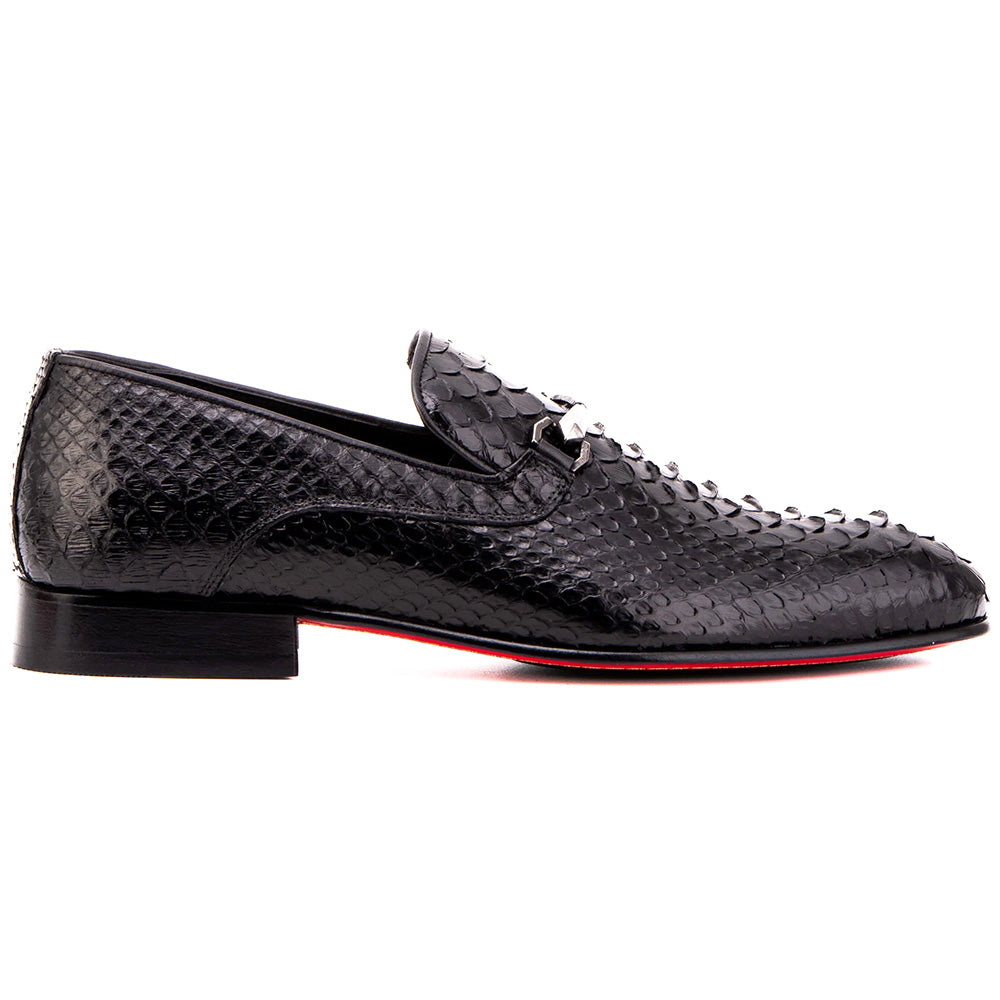 Vinci Leather The Viper Python Skin Bit Loafer Black