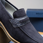 You are looking at: Zelli Meo 3 Suede & Crocodile Loafers Grey (11-035-GRY)